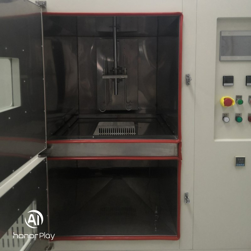 2.2. Pentru testarea alternativă a probelor între camerele superioare și inferioare, o tijă de împingere electrică montată deasupra cuptorului de uscare ridică și coboară specimenele. Suportul pentru specimene, fabricat din oțel inoxidabil 316L, găzduiește șase mostre. O ușă despărțitoare acționată electric între cuptorul de uscare și camera de imersie în sare se deschide și se închide automat în conformitate cu secvența experimentală, cu butoane suplimentare manuale pentru funcționare temporară.