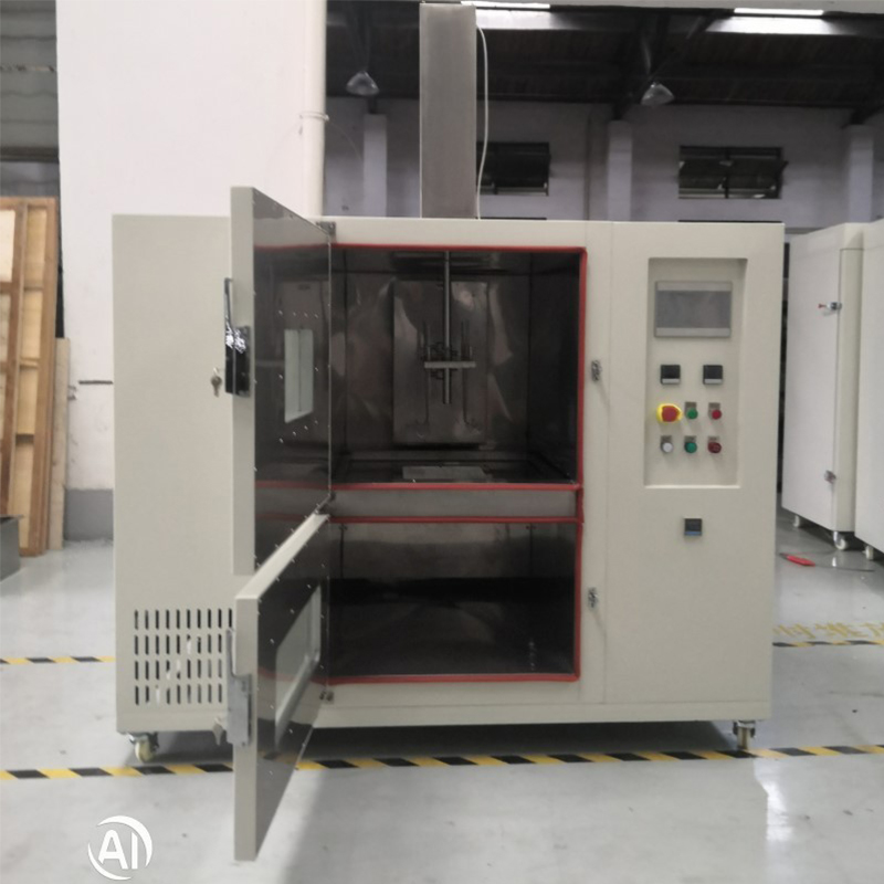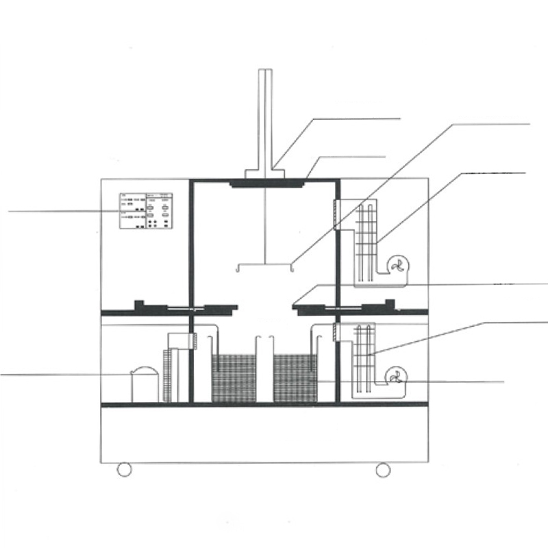 2.1. Această cameră de testare cu imersie în soluție de sare este proiectată cu o cameră de uscare superioară și un rezervor inferior pentru soluție de sare. Ușa despărțitor se deschide automat pentru a menține uscăciunea și pentru a îndeplini cerințele testului de imersie, asigurând controlul independent al temperaturii și umidității în ambele camere. Camera interioară este construită din 1,2 mm grosime pentru a spori rezistența la coroziune a camerei de lucru. Carcasa exterioară este construită din tablă de oțel carbon cu grosimea de 1,5 mm, cu un finisaj acoperit cu pulverizare. Izolația ultrafine din lână din fibră ceramică umple cavitatea dintre camera interioară și carcasa exterioară pentru reținere termică. Atât ușile camerei de uscare, cât și cele ale camerei de imersie în sare sunt proiectate cu balamale la stânga pentru îndepărtarea și introducerea convenabilă a specimenului. Tocurile ușilor încorporează etanșări rezistente la temperaturi înalte/joase și au ferestre de vizualizare cu geam dublu temperat, pentru o observare în timp real. Mânerele din oțel inoxidabil sporesc rezistența la coroziune. Recipientele cu soluție de imersie în sare sunt fabricate din oțel inoxidabil 316L cu acoperire PTFE internă/exterioară.
